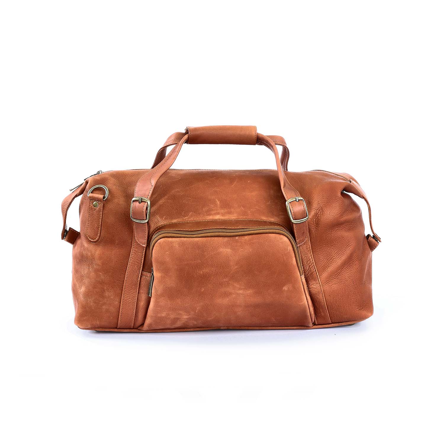 - Carry bag by two leather handles with closure or all leather adjustable removable shoulder strap.