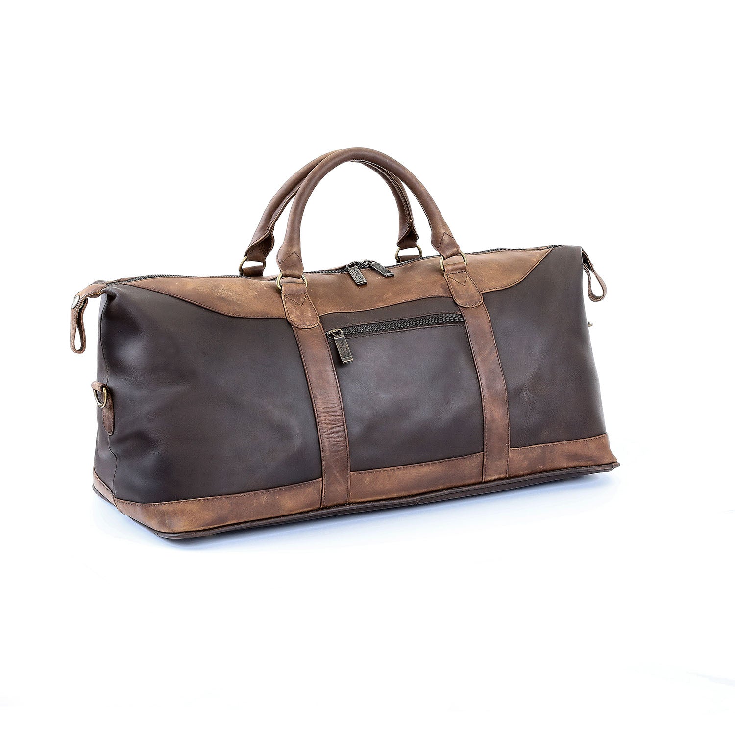 - Double handles for carrying and leather adjustable removable shoulder strap